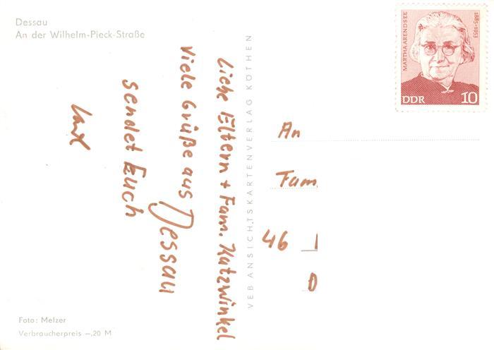 73909478 Dessau-Rosslau Wilhelm Pieck Strasse Fontaene postalisch nicht gelaufen Erhaltung siehe scans [WerneD78] KatCode: 11110015001000