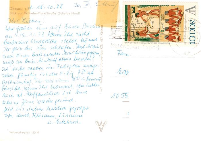 73909477 alte Postkarte Dessau-Rosslau Wilhelm Pieck Strasse Scheibe Nord postalisch gelaufen Erhaltung siehe scans [WerneD78] KatCode: 11110015001000