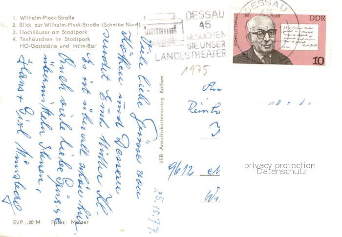 72972387 alte Postkarte Dessau-Rosslau Wilhelm-Pieck-Strasse Stadtpark postalisch gelaufen Erhaltung siehe scans [NatalD47] KatCode: 11110015001000