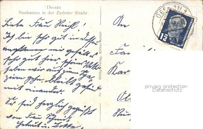 72313256 alte Postkarte Dessau-Rosslau Zerbster Strasse Strassenbahn postalisch gelaufen Erhaltung siehe scans KatCode: 11110015001000