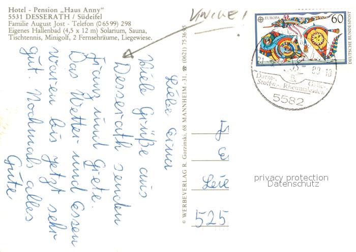 72993691 alte Postkarte Desserath Hotel Pension Haus Anny postalisch gelaufen Erhaltung siehe scans [AndreD76] KatCode: 11110007233017