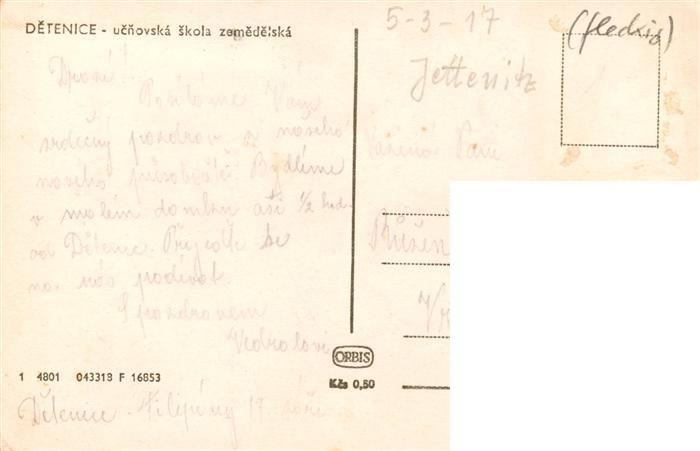 73959649 Detenice Jettenitz Liban Ehden Jicin CZ Ucnovska skola zemedelska Schule postalisch nicht gelaufen Erhaltung siehe scans [FriedD77] KatCode: 11520