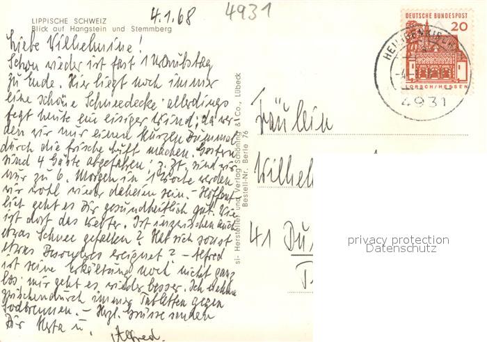 73692589 alte Postkarte Detmold Blick auf Hangstein und Stemmberg Lippische Schweiz postalisch gelaufen Erhaltung siehe scans [FriedD77] KatCode: 11110005766020