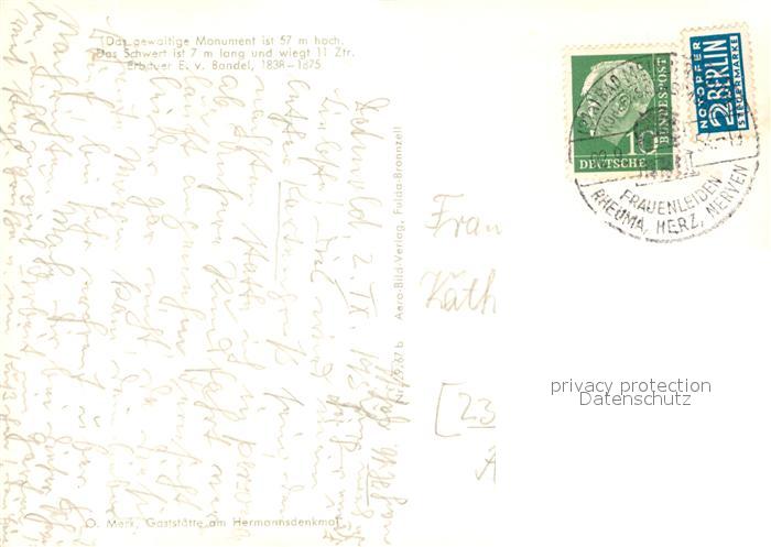 73171627 alte Postkarte Detmold Fliegeraufnahme Hermannsdenkmal postalisch gelaufen Erhaltung siehe scans [NatalD47] KatCode: 11110005766020