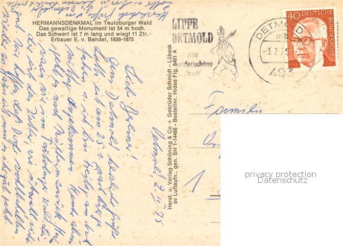 73105469 alte Postkarte Detmold Hermannsdenkmal Fliegeraufnahme postalisch gelaufen Erhaltung siehe scans [WerneD78] KatCode: 11110005766020