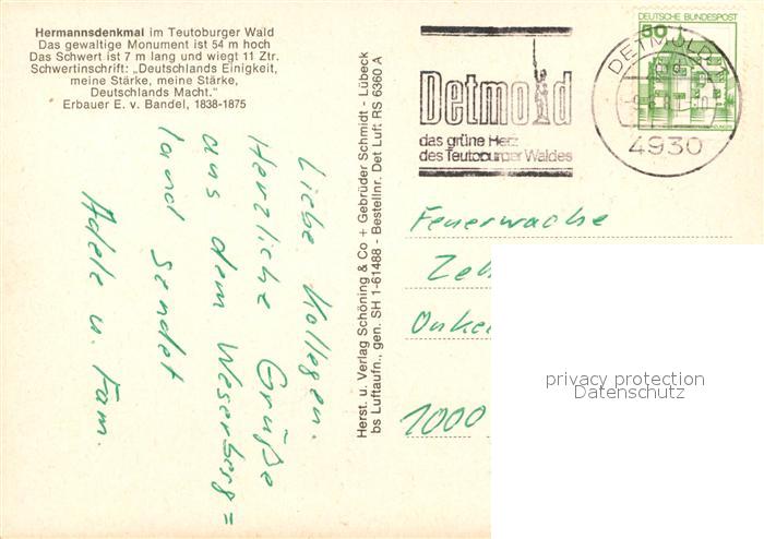 73105464 alte Postkarte Detmold Hermannsdenkmal Fliegeraufnahme postalisch gelaufen Erhaltung siehe scans [WerneD78] KatCode: 11110005766020