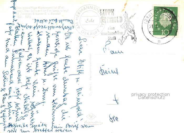 73070175 alte Postkarte Detmold Hermannsdenkmal Hiddesen Denkmal Bismarckstein Donoperteich Externsteine Lippische Schweiz postalisch gelaufen Erhaltung siehe scans [FriedD77] KatCode: 11110005766020