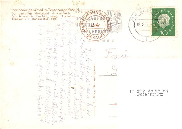 73149158 alte Postkarte Detmold Hermannsdenkmal im Teutoburger Wald postalisch gelaufen Erhaltung siehe scans [FriedD77] KatCode: 11110005766020
