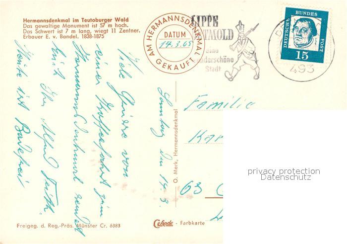 73230362 alte Postkarte Detmold Hermannsdenkmal im Teutoburger Wald Fliegeraufnahme postalisch gelaufen Erhaltung siehe scans [FriedD77] KatCode: 11110005766020