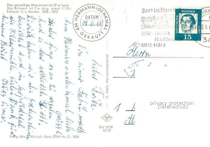 73168971 alte Postkarte Detmold Hermannsdenkmal im Teutoburger Wald Fliegeraufnahme postalisch gelaufen Erhaltung siehe scans [FriedD77] KatCode: 11110005766020