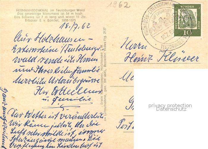 73141954 alte Postkarte Detmold Hermannsdenkmal im Teutoburger Wald Fliegeraufnahme postalisch gelaufen Erhaltung siehe scans [FriedD77] KatCode: 11110005766020