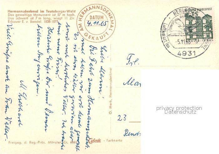 73652679 alte Postkarte Detmold Hermannsdenkmal im Teutoburger Wald Fliegeraufnahme postalisch gelaufen Erhaltung siehe scans [FriedD77] KatCode: 11110005766020
