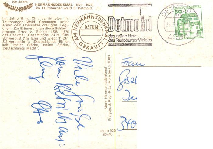 73886494 alte Postkarte Detmold Hermannsdenkmal im Teutoburger Wald postalisch gelaufen Erhaltung siehe scans [WerneD78] KatCode: 11110005766020