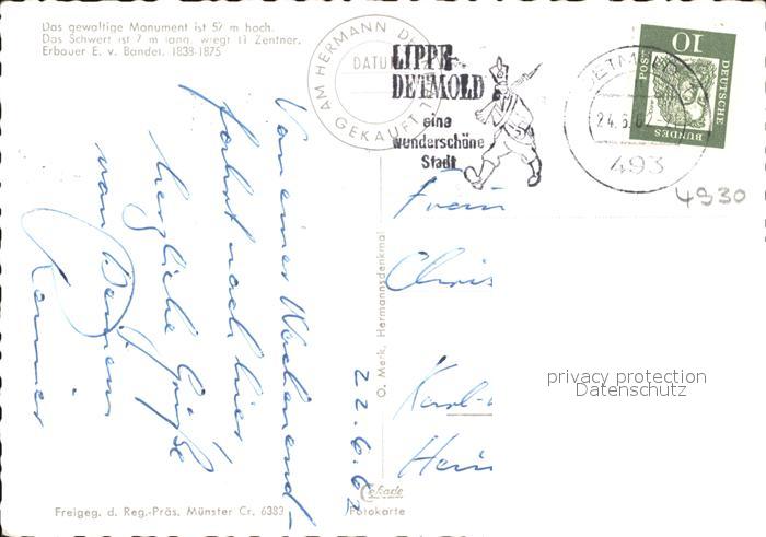 71913184 alte Postkarte Detmold Hermannsdenkmal Teutoburger Wald postalisch gelaufen Erhaltung siehe scans KatCode: 11110005766020