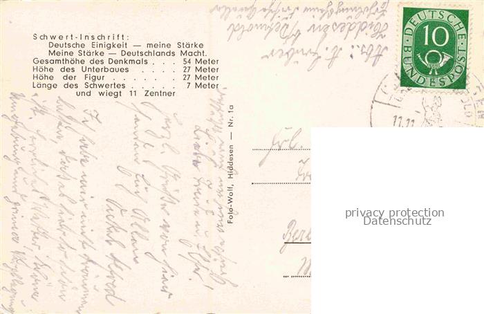 74150467 alte Postkarte DETMOLD Lippe Hermannsdenkmal postalisch gelaufen Erhaltung siehe scans [FriedD77] KatCode: 11110005766020
