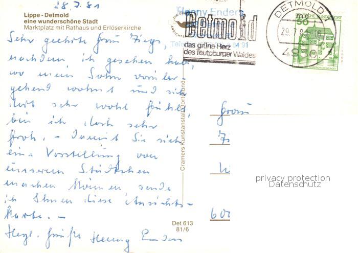 73258133 alte Postkarte Detmold Marktplatz mit Rathaus und Erloeserkirche postalisch gelaufen Erhaltung siehe scans [WerneD78] KatCode: 11110005766020