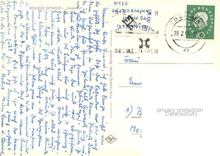 73811081 alte Postkarte Detmold Schloss Detmold Innenhof postalisch gelaufen Erhaltung siehe scans [WerneD78] KatCode: 11110005766020
