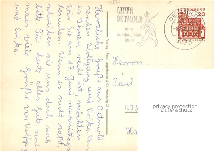 72943762 alte Postkarte Detmold Schloss Rathaus Landestheater Krummestrasse postalisch gelaufen Erhaltung siehe scans [PaolaD17] KatCode: 11110005766020