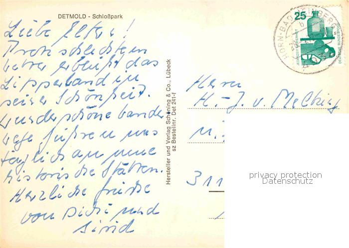 72855590 alte Postkarte Detmold Schlosspark postalisch gelaufen Erhaltung siehe scans [LiesaD40] KatCode: 11110005766020