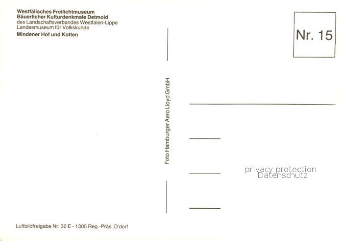 73043544 Detmold Westfaelisches Freilichtmuseum Baeuerlicher Kulturdenkmale Landesmuseum fuer Volkskunde Mindener Hof und Kotten Fliegeraufnahme postalisch nicht gelaufen Erhaltung siehe scans [FriedD77] KatCode: 11110005766020