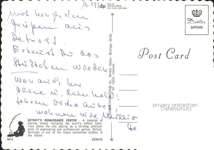 72329076 Detroit Alabama Renaissance Center postalisch nicht gelaufen Erhaltung siehe scans KatCode: 14140010000000