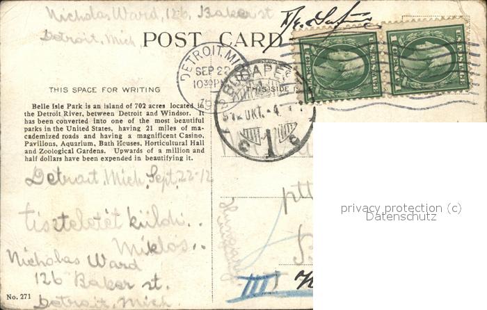 11500945 old postcard Detroit Michigan Bridge Approach To Belle Isle Park postalisch gelaufen Erhaltung siehe scans KatCode: 14140240000000