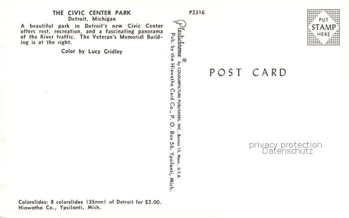 73271930 Detroit Michigan Civic Center Park postalisch nicht gelaufen Erhaltung siehe scans [FriedD77] KatCode: 14140240000000