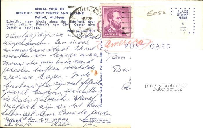 72289658 old postcard Detroit Michigan Civic Center Sky Line postalisch gelaufen Erhaltung siehe scans KatCode: 14140240000000