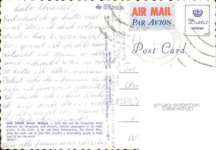 72456704 old postcard Detroit Michigan Civic Center postalisch gelaufen Erhaltung siehe scans KatCode: 14140240000000