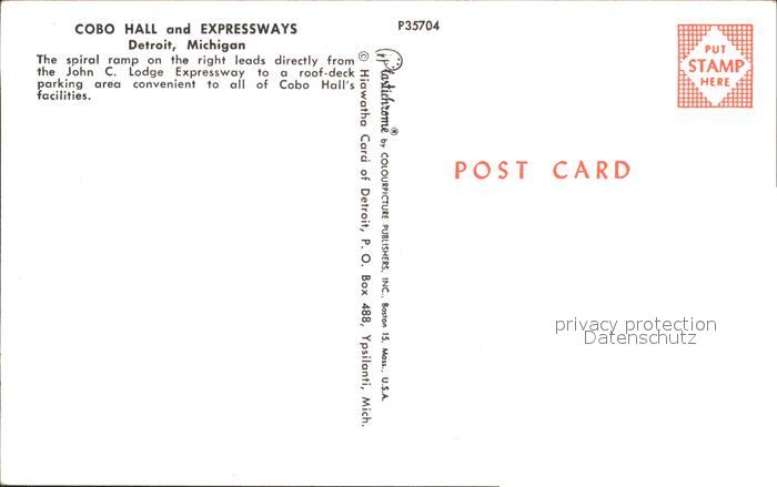 71954724 Detroit Michigan Cobo Hall postalisch nicht gelaufen Erhaltung siehe scans KatCode: 14140240000000