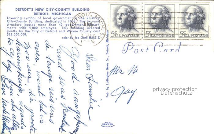 72320055 old postcard Detroit Michigan Detroit new City-Country Building postalisch gelaufen Erhaltung siehe scans KatCode: 14140240000000