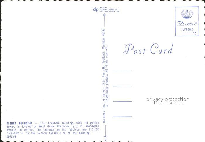72073287 Detroit Michigan Fisher Building postalisch nicht gelaufen Erhaltung siehe scans KatCode: 14140240000000