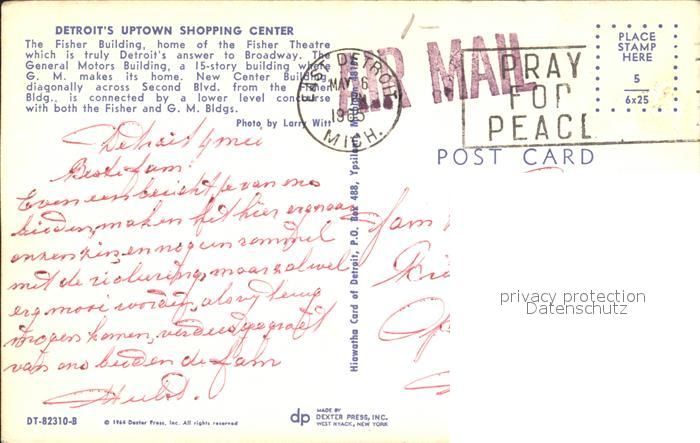 72285200 old postcard Detroit Michigan Fliegeraufnahme Uptown Shopping Center postalisch gelaufen Erhaltung siehe scans KatCode: 14140240000000