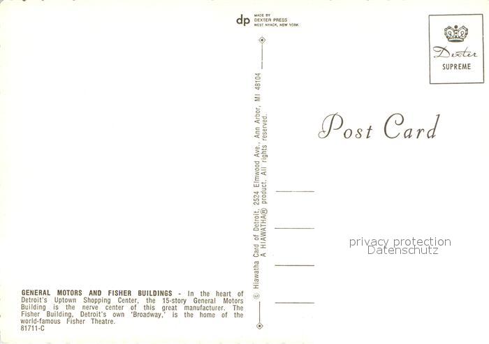 73717502 Detroit Michigan General Motors and Fisher Buildings aerial view postalisch nicht gelaufen Erhaltung siehe scans [FriedD77] KatCode: 14140240000000