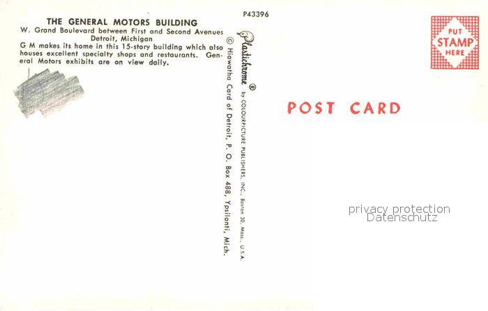 72907191 Detroit Michigan General Motors Building postalisch nicht gelaufen Erhaltung siehe scans [NatalD47] KatCode: 14140240000000