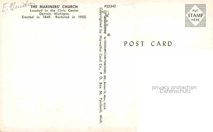 72907154 Detroit Michigan Mariners Church postalisch nicht gelaufen Erhaltung siehe scans [NatalD47] KatCode: 14140240000000