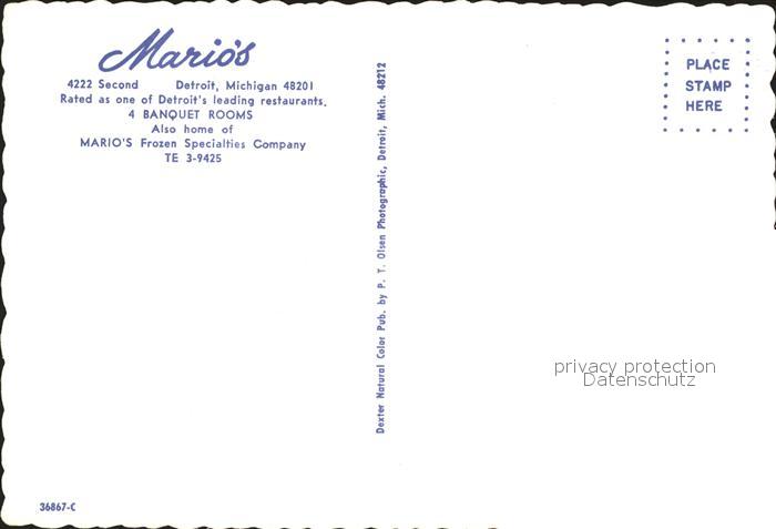 71902024 Detroit Michigan Marios Restaurant postalisch nicht gelaufen Erhaltung siehe scans KatCode: 14140240000000