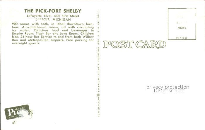 72092658 Detroit Michigan Pick Fort Shelby postalisch nicht gelaufen Erhaltung siehe scans KatCode: 14140240000000