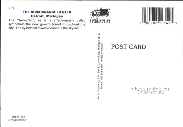 72556325 Detroit Michigan Renaissance Center postalisch nicht gelaufen Erhaltung siehe scans [AndreD76] KatCode: 14140240000000