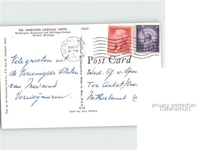 72299817 old postcard Detroit Michigan Sheraton Cadillac Hotel postalisch gelaufen Erhaltung siehe scans KatCode: 14140240000000