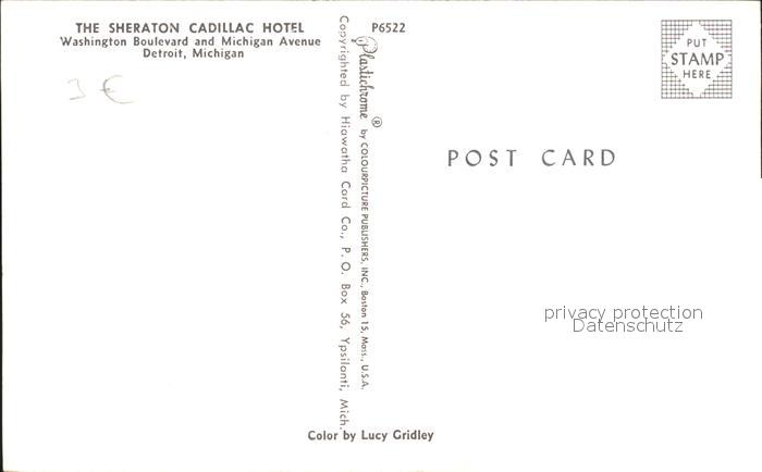 71925839 Detroit Michigan Sheraton Cadillac Hotel postalisch nicht gelaufen Erhaltung siehe scans KatCode: 14140240000000