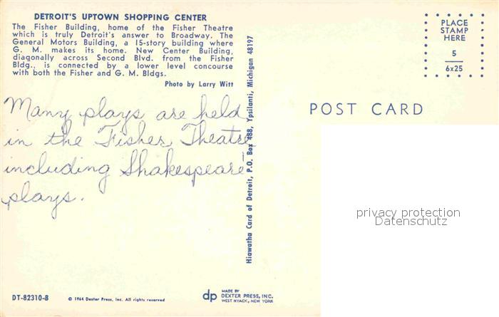 72765404 Detroit Michigan Uptown Shopping Center postalisch nicht gelaufen Erhaltung siehe scans [NatalD47] KatCode: 14140240000000