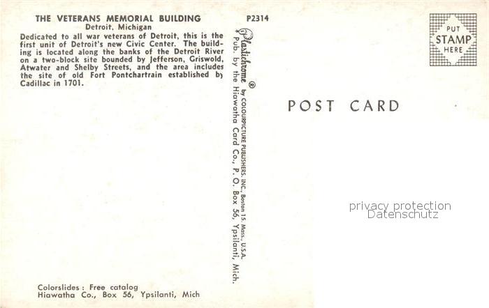 73118151 Detroit Michigan Veterans Memorial Building postalisch nicht gelaufen Erhaltung siehe scans [KathaD81] KatCode: 14140240000000