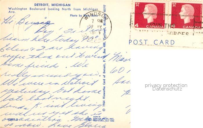 73131627 old postcard Detroit Michigan Washington Boulevard postalisch gelaufen Erhaltung siehe scans [KathaD81] KatCode: 14140240000000
