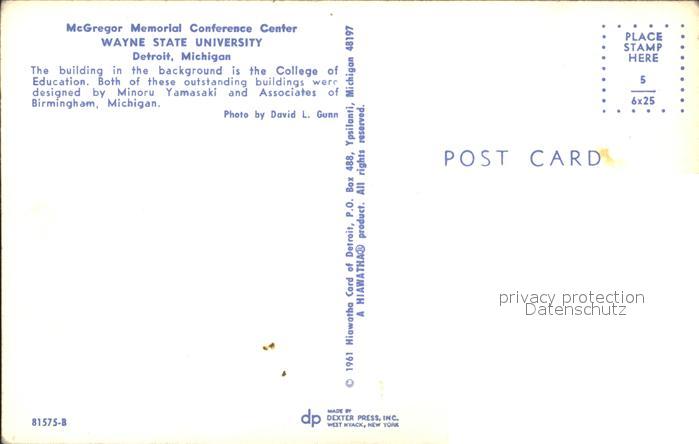 72306154 Detroit Michigan Wayne State University postalisch nicht gelaufen Erhaltung siehe scans KatCode: 14140240000000