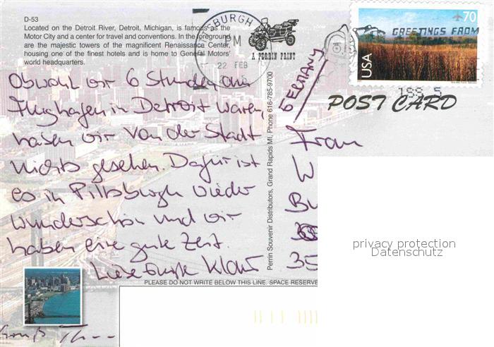 72843784 old postcard Detroit Michigan postalisch gelaufen Erhaltung siehe scans [NatalD47] KatCode: 14140240000000