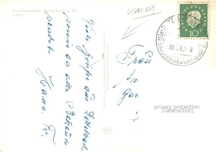 73720181 alte Postkarte Dettelbach Franziskanerkloster postalisch gelaufen Fliegeraufnahme Erhaltung siehe scans [FriedD77] KatCode: 11110009675117