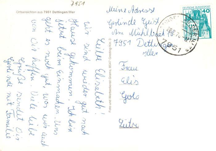 73875027 alte Postkarte Dettingen Iller Ortsansichten Kirche Schule postalisch gelaufen Erhaltung siehe scans [FriedD77] KatCode: 11110008426031