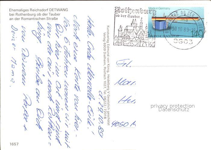 72126039 alte Postkarte Detwang Ehemaliges Reichsdorf postalisch gelaufen Erhaltung siehe scans KatCode: 11110009571193