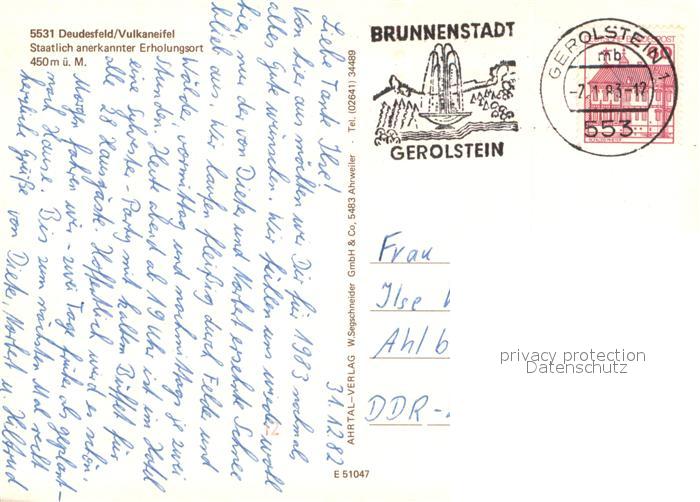 73672740 alte Postkarte Deudesfeld Ortsansicht Maar Picknickplatz Panorama postalisch gelaufen Erhaltung siehe scans [WerneD78] KatCode: 11110007233017